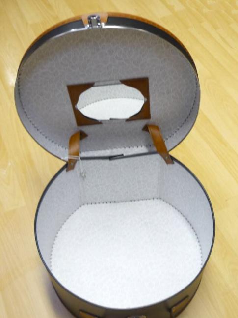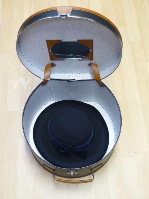 Mit diesem Hutkoffer ist Ihr Hut bestens geschützt. Der aus Pappe aufwändig hergestellte Hutkarton ist ideal für die Aufbewahrung Ihres Hutes. Durch Tragegriff und Schloss ideal für die Reise. Mit einem Durchmesser von ca. 38cm passen die meisten Kopfbedeckungen gut hinein. Höhe: ca. 18cm